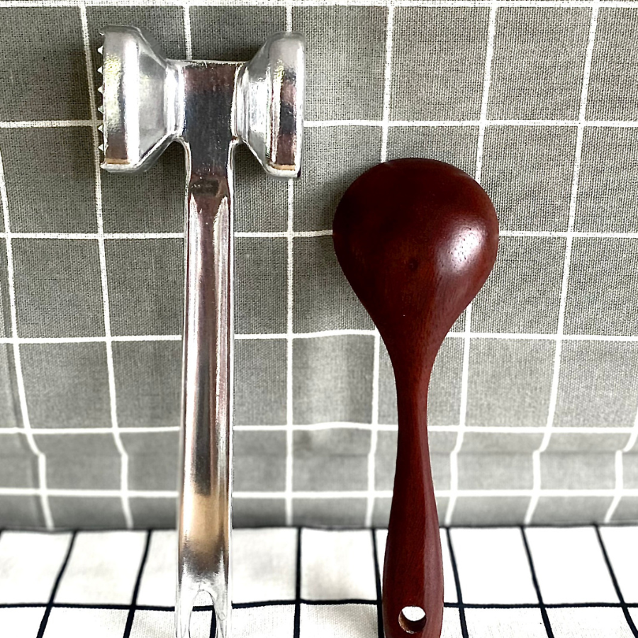 Búa đập thịt, dần thịt hai đầu Mycook đuôi cán được khoan lỗ nhỏ để có thể treo lên sau mỗi lần sử dụng.