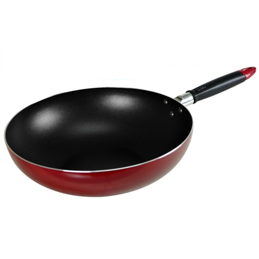 材质:铝合金,耐热电木手柄。 导热快,散热均匀,不粘性好,(可)炒、煮、清洗方便。